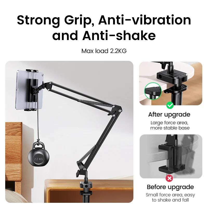 UGREEN Phone Holder Tablet Stand Mount 360 Rotation Adjustable Lazy Cellphone Clip Aluminum for Bed Long Arm
